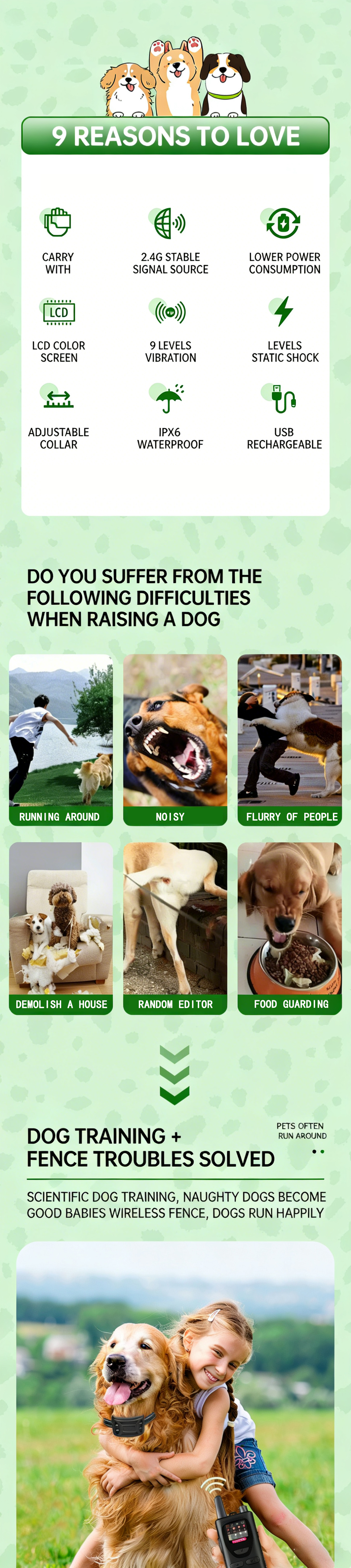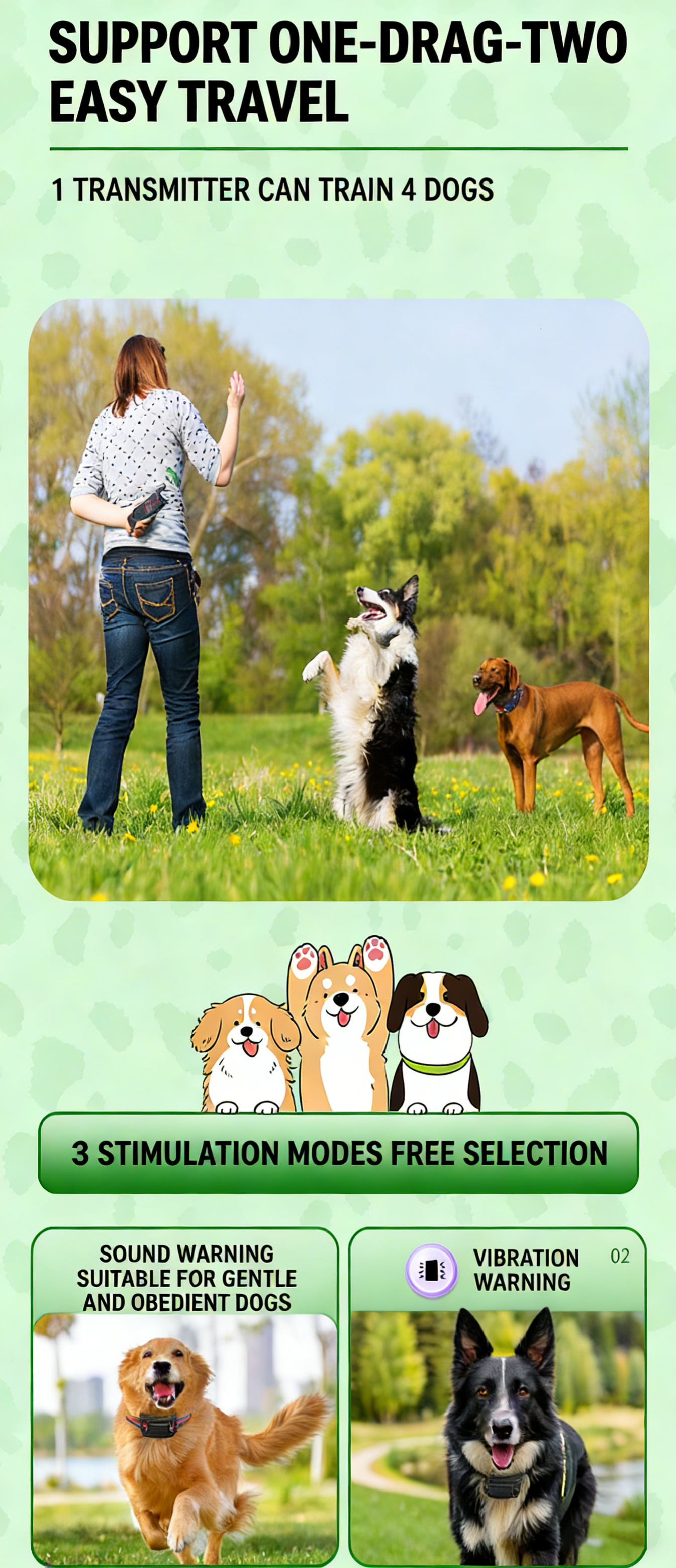 2-IN-1 WIRELESS DOG FENCE & TRAINING COLLAR | RECHARGEABLE IPX6 WATERPROOF | REMOTE CONTROL UP TO 4 DOGS
